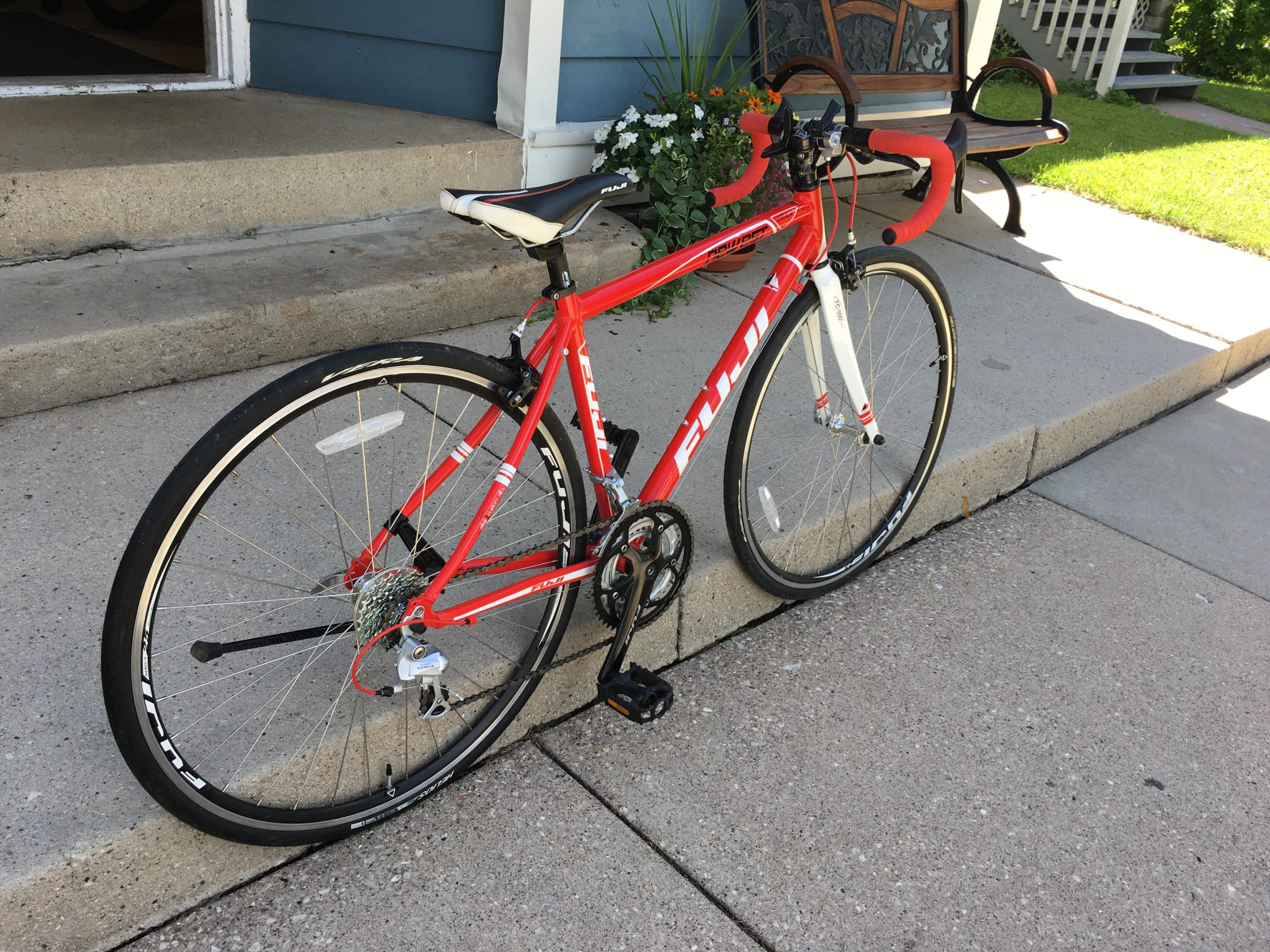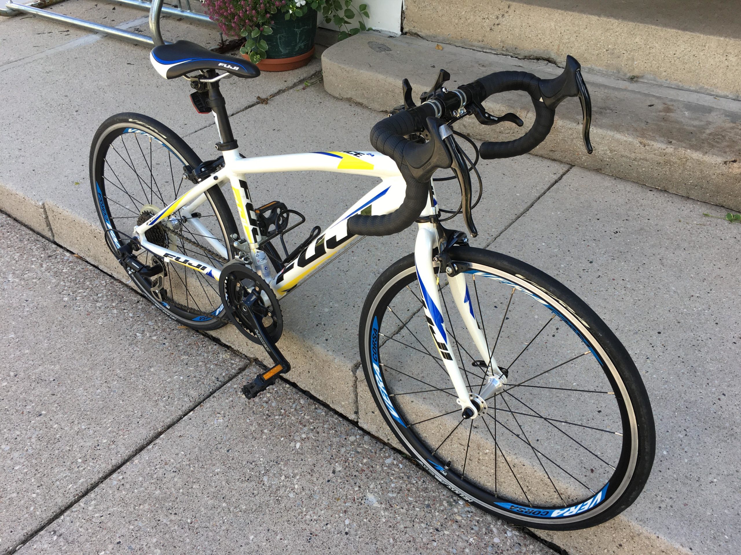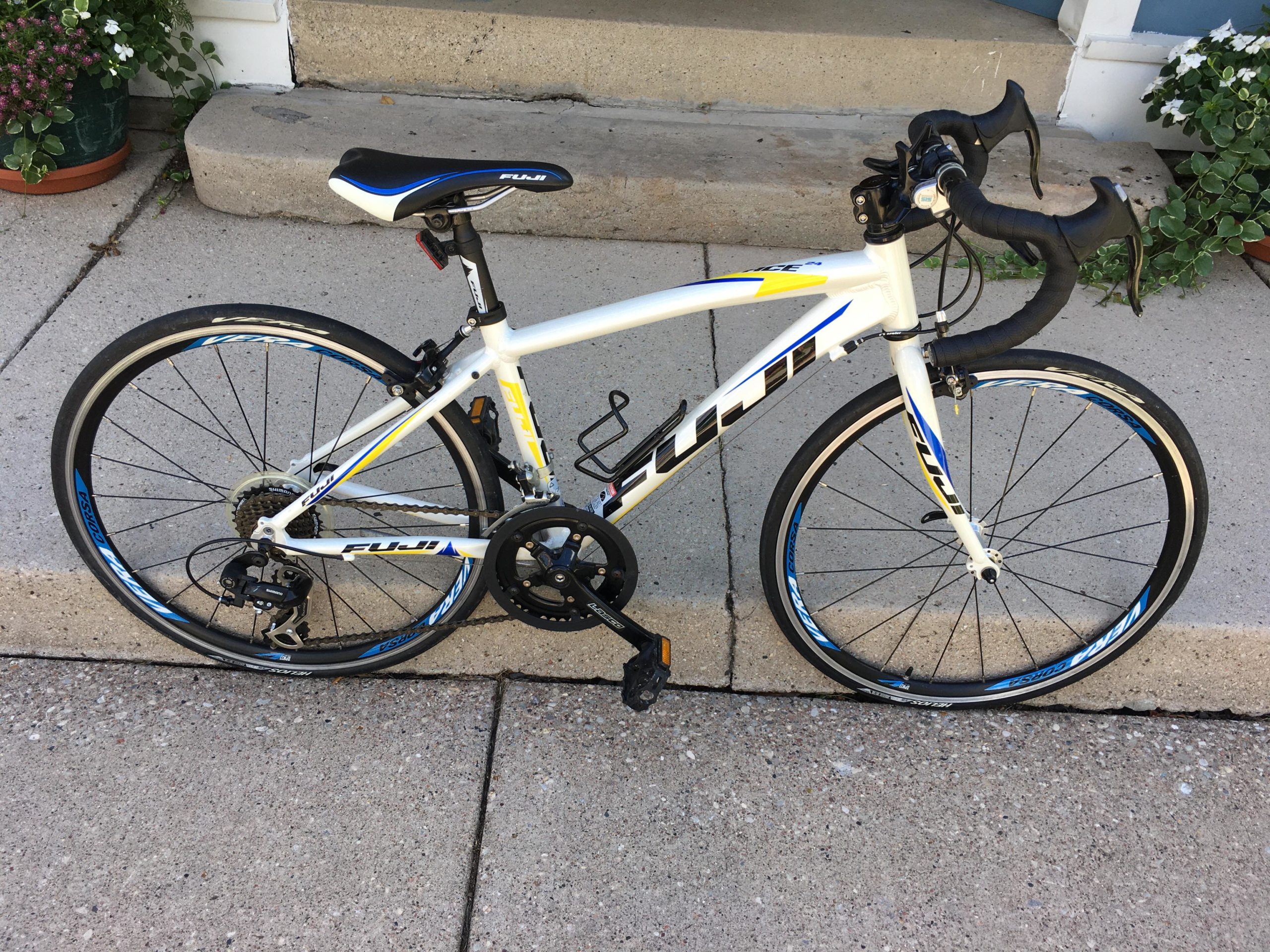 Fuji Newest 3.0: Size 46. Aluminum frame, carbon fork. Sora 21s drivetrain. Bars & shifters were converted over to a stem shifter for a younger child, however, bike does include the Sora STI levers, and handlebar. Lightly used. Only $425