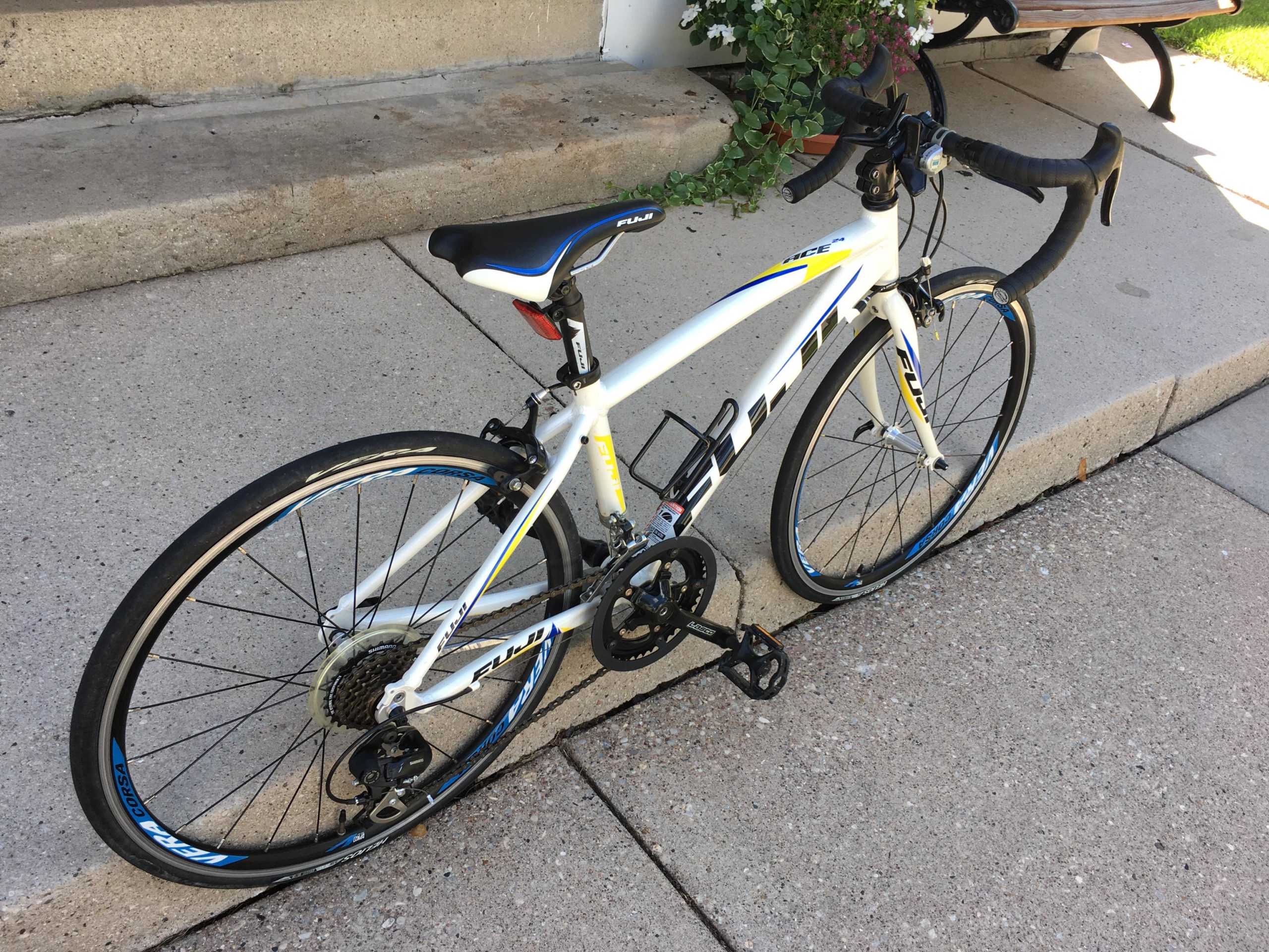 Fuji Ace 24: 13″Aluminum frame, Shimano 14 speed drivetrain. 24″ wheels. Perfect road bike for your 7-10 year old. Lightly used! Only $275