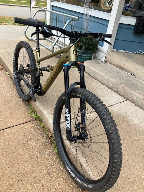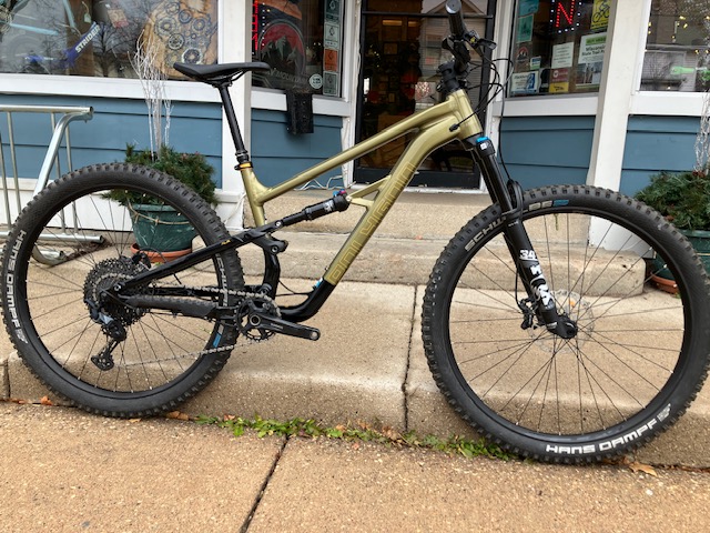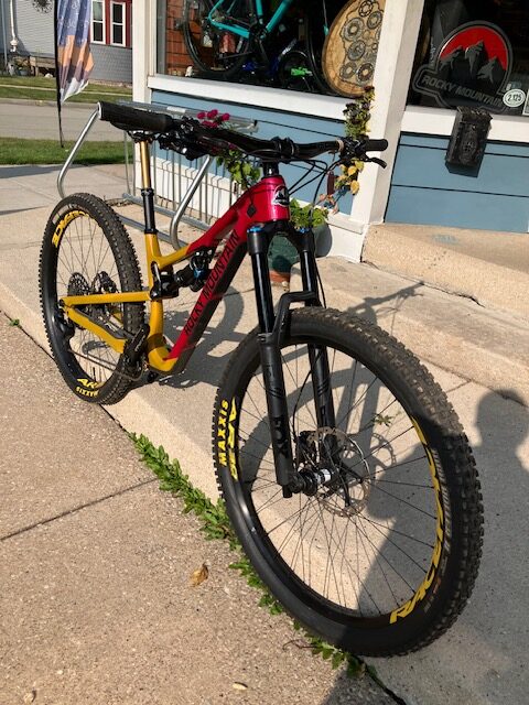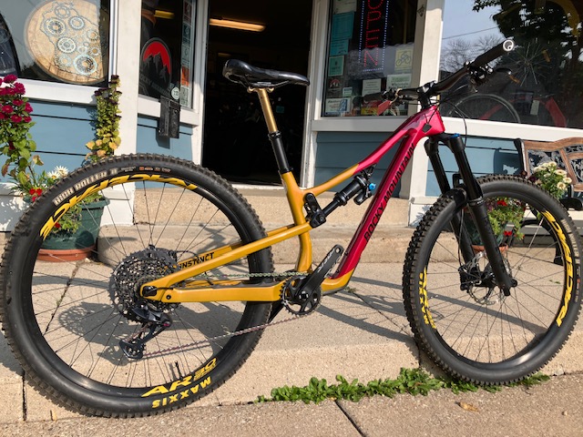 Rocky carbon Instinct: Size small. Carbon frame, Fox Elite 36 fork 160mm, Fox DPX2 shock 150mm, SRAM GX 12s drivetrain, Shimano XT quad piston brakes w/ Shimano rotors, Fox Transfer dropper, Raceface Next R carbon handlebar, Raceface AR/DT350 wheelset tubeless. Just a mere $2500.
