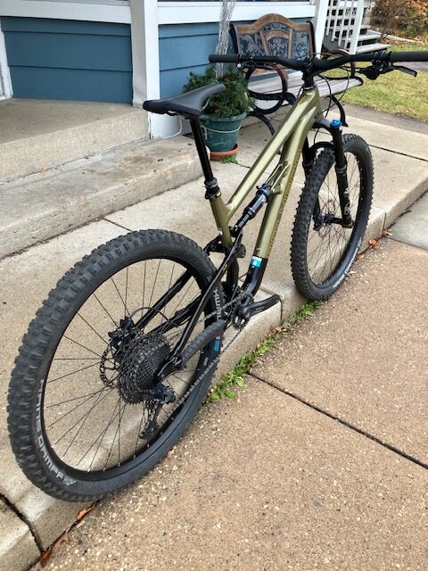 Polygon Siskiu T8: Size XL (Note: sizing runs on the small side). Aluminum frame. Shimano SLX 12 speed drivetrain. Fox Rhythm 34 fork, Fox Float DPS shock. Tektro Orion quad brakes. Tubeless setup. TransX dropper post. Great value at only $1500!